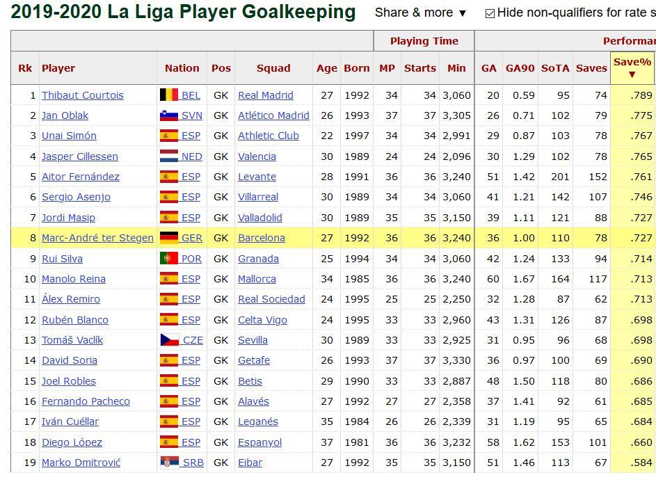 シュテーゲンのセーブ率知ったら死にそう