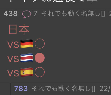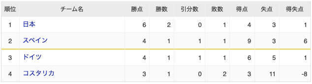 ドイツと1-1引分、コスタリカに1-0勝利、スペインに0-1敗戦って思ってた