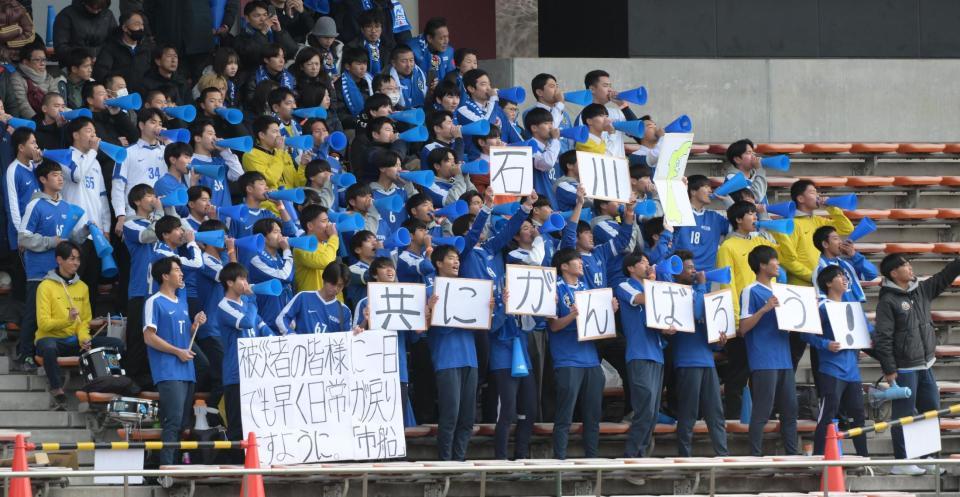 第102回全国高校サッカー選手権▽3回戦 市船橋―星稜(2日・柏の葉)星稜(石川)は選手権優勝5度を誇る千葉の強豪・市船橋と対戦する。1日に発生した石川を震源とする地震により、星稜の学校応援団は会場の千葉・柏市に集まることができなかった。1日夜にSNSと情報を確認した今大会の神奈川代表・日大藤沢サッカー部は、選手主導でスタジアムに駆けつけ、星稜に声援を届けることを決めた。