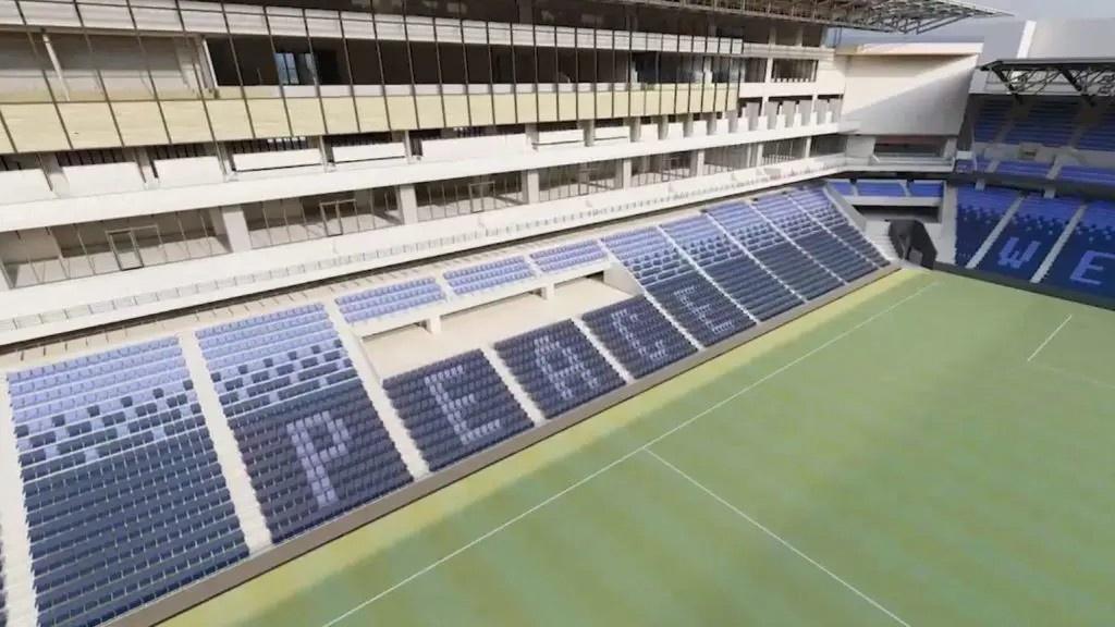 不思議なのがホームゴール裏・メインスタンド側の対面が小さいビジョンで、ビジターゴール裏・バックスタンド(ホテル)側の対面は(パース通りなら)大きいビジョンということ