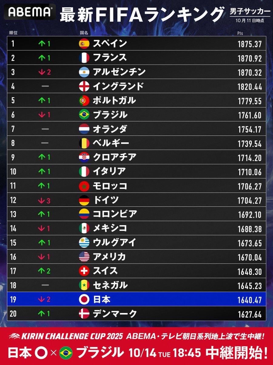 今回で日本のランキング上がる?